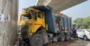 রাজধানীর আগারগাঁও ট্রাফিক মোড়ে মেট্রোরেলের পিলারে ধাক্কা লেগে একটি মাটি বোঝাই ট্রাকের সামনের অংশ দুমড়েমুচড়ে গেছে। এতে মেট্রোরেলের পিলার কিছুটা ক্ষতিগ্রস্ত হয়েছে।
