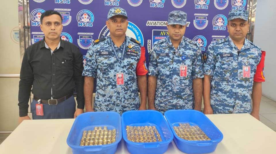 শাহজালাল বিমানবন্দরে বিমানের কার্গো থেকে ১৫৩ সোনার বার জব্দ