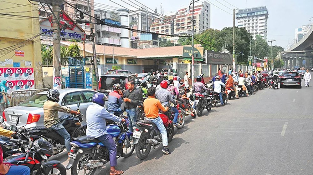 জ্বালানি তেলের দাম বৃদ্ধিতেও কমেনি ভোগান্তি, পাম্পে দীর্ঘ লাইন